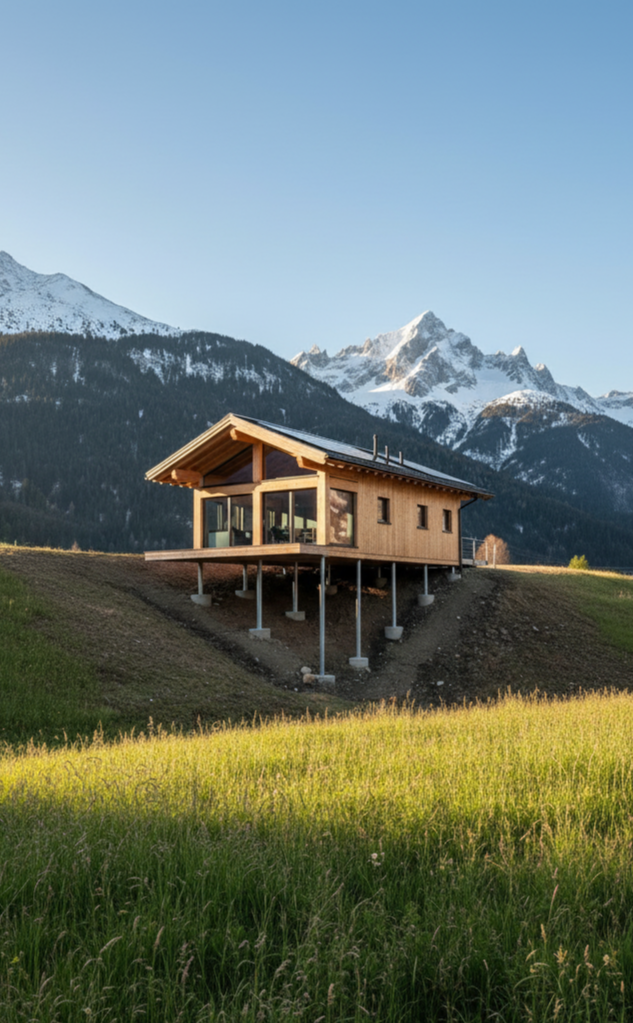 PEFC-certified Alpine wood and short supply chains ensure durability, traceability, and responsible sourcing.
